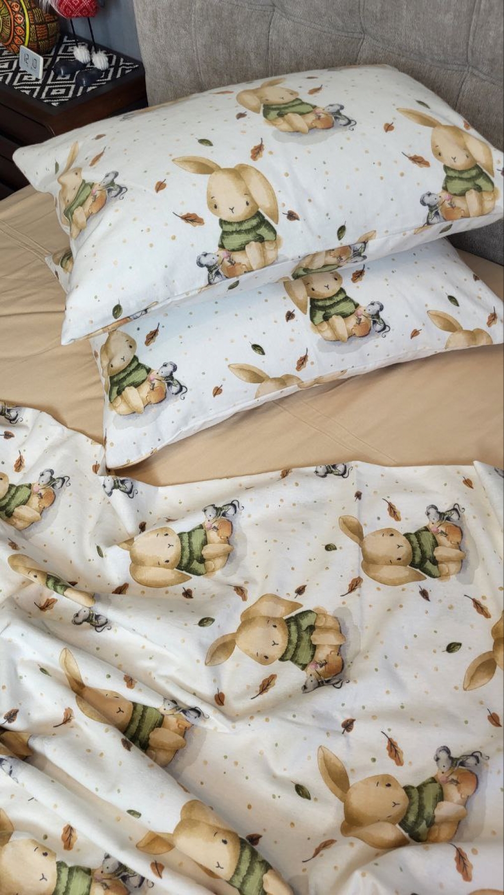 Комплект постільної білизни «Вухастики/бежева пастель» створює у спальні атмосферу затишку та допомагає розслабитися після насиченого дня.