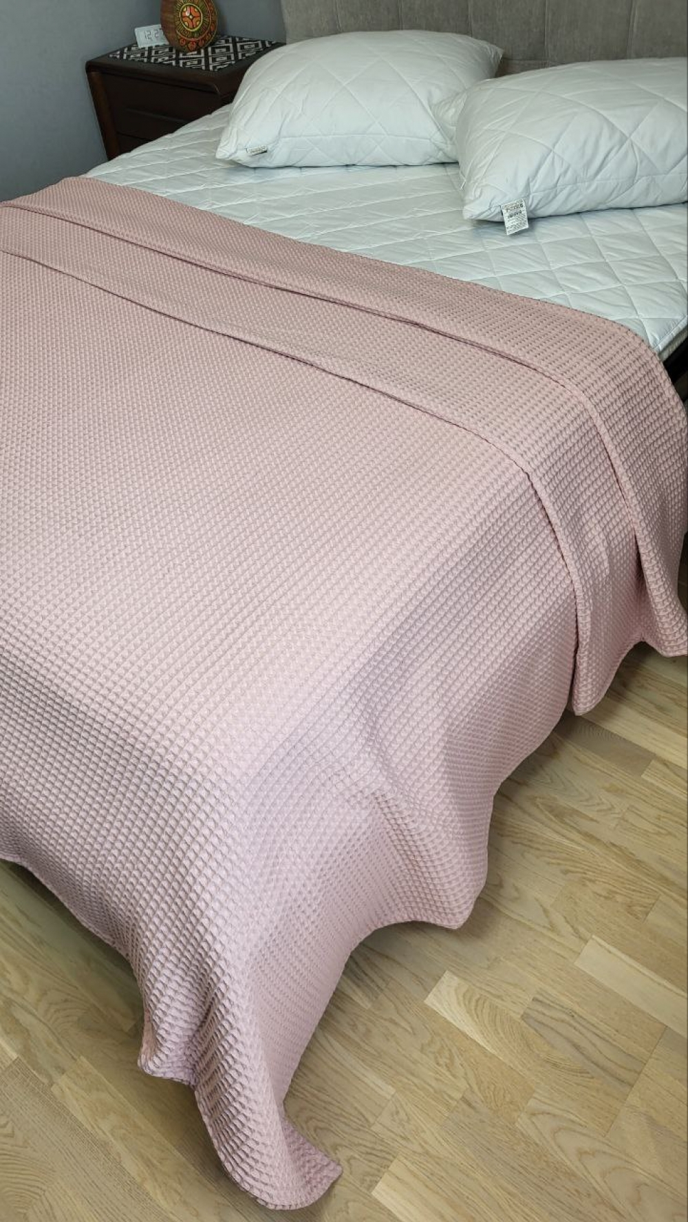 Вафельна структура тканини (піке соти) забезпечує хорошу вентиляцію та легкість. Покривало не перегріває та створює комфорт навіть у теплу пору року.