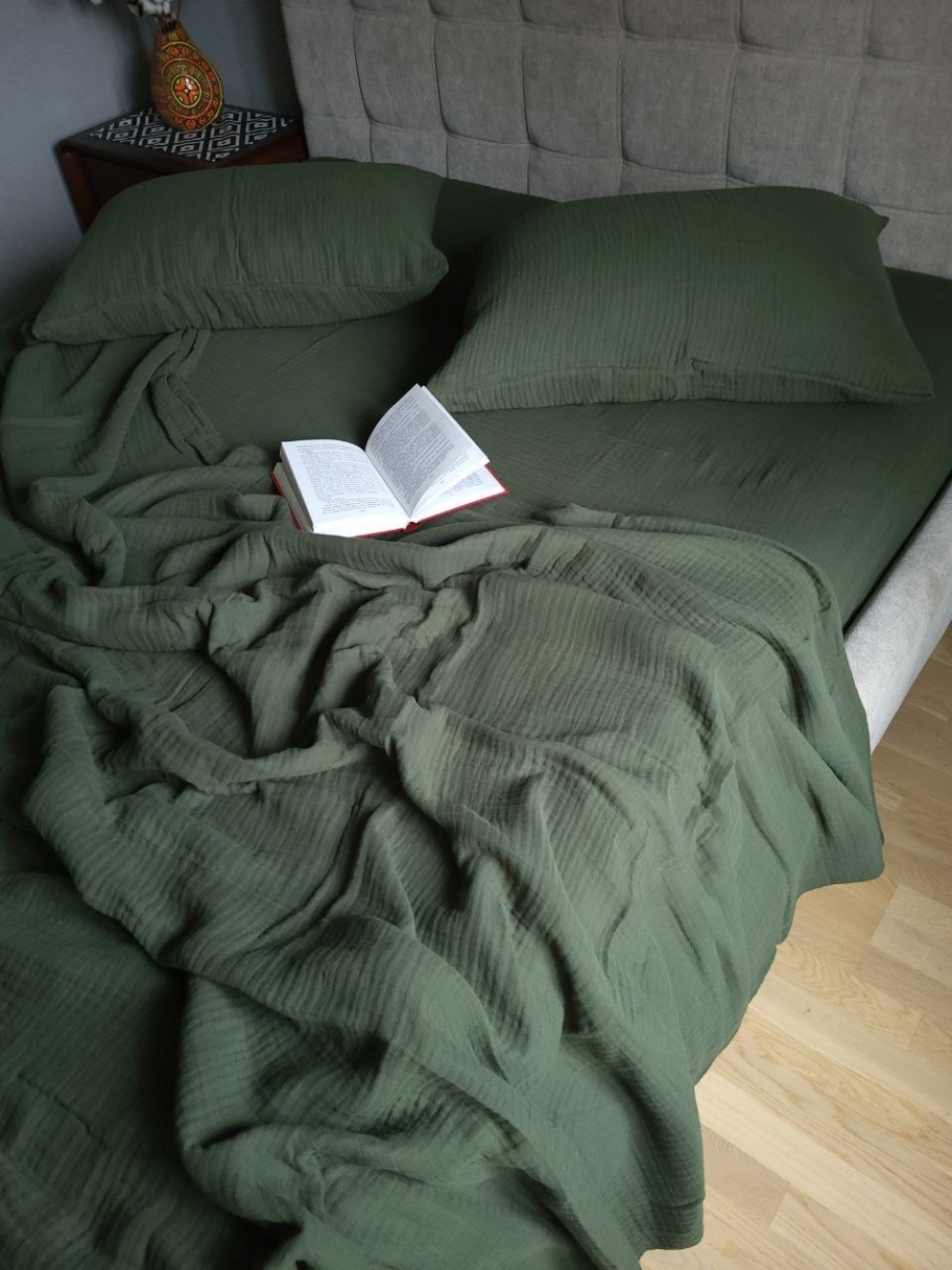 Завдяки своїй повітропроникності муслін добре пропускає повітря, не створює перегріву та забезпечує комфорт у теплу пору року. Покривало ідеально підходить як легкий плед або декоративний елемент.