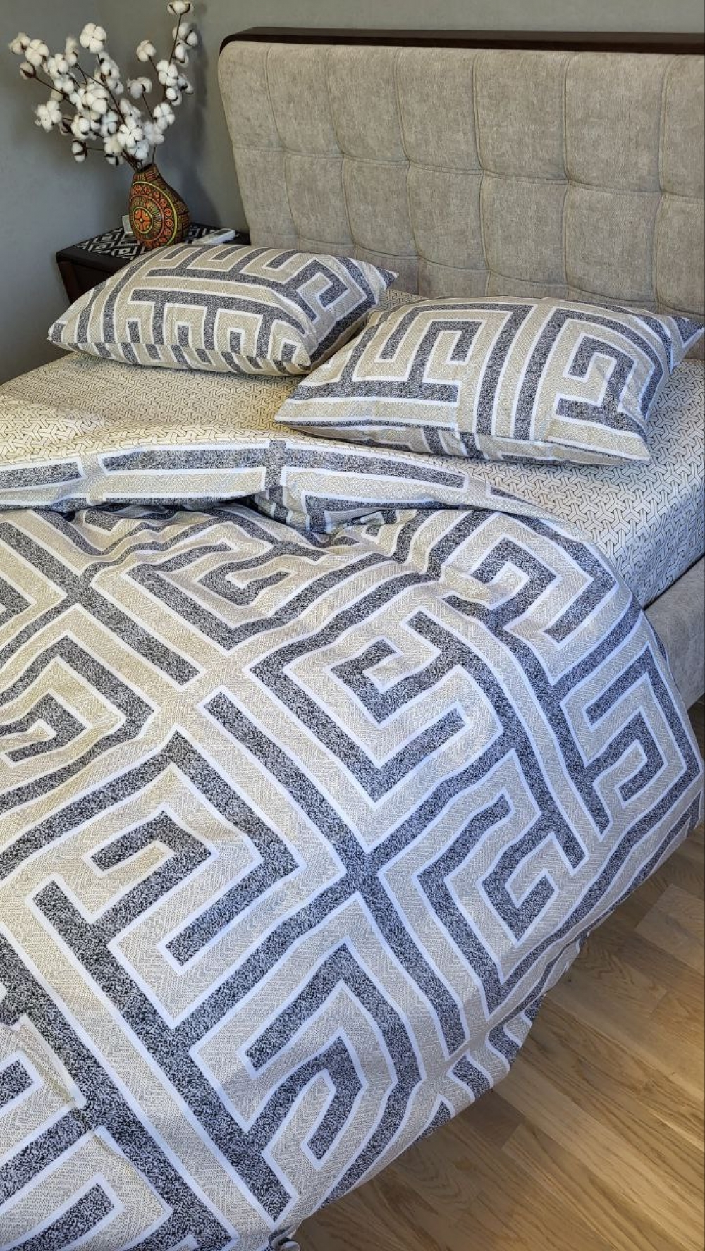 Комплект постільної білизни «Лабіринт» створює у спальні атмосферу затишку та допомагає розслабитися після насиченого дня.