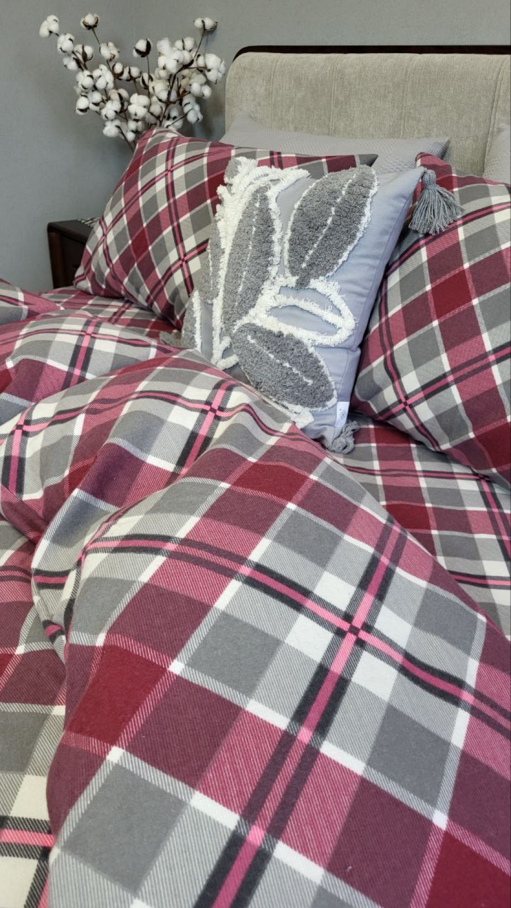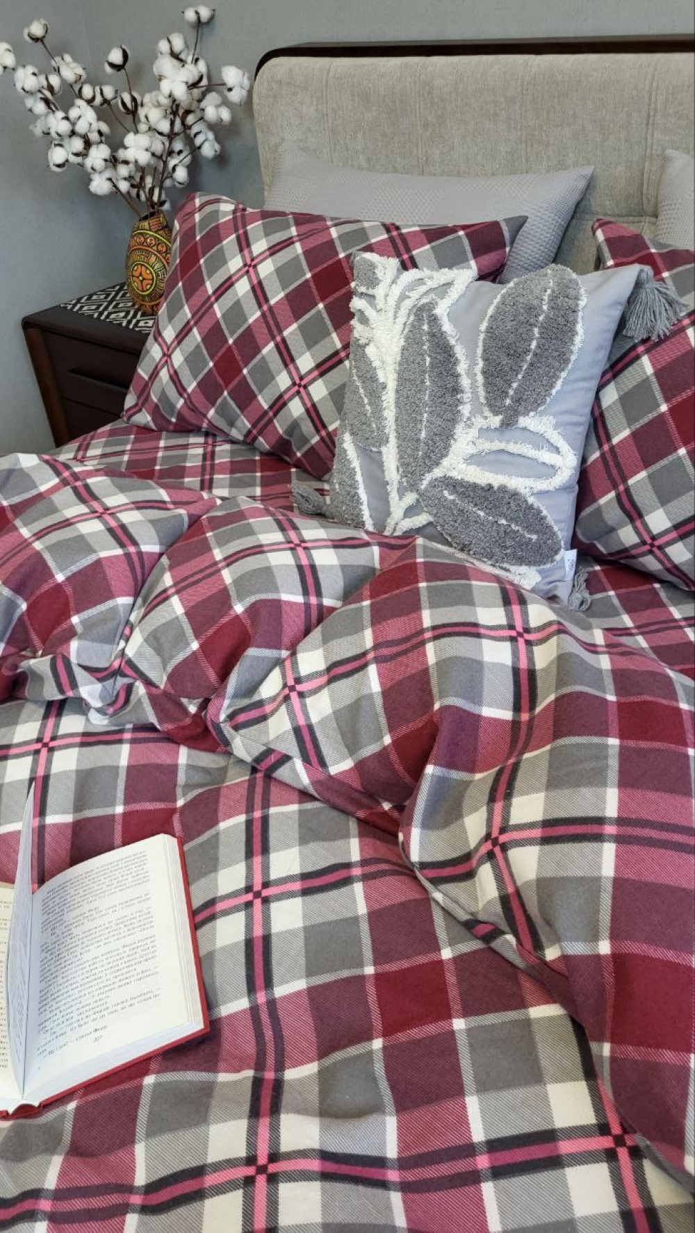 Комплект постільної білизни «Крафт бордо» створює у спальні атмосферу затишку та допомагає розслабитися після насиченого дня.
