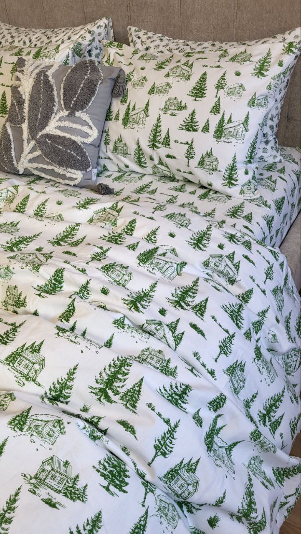 Комплект постільної білизни «Смерека» створює у спальні атмосферу затишку та допомагає розслабитися після насиченого дня.