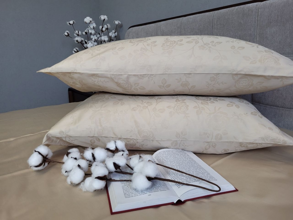 Постільна білизна Сатин JACQUARD, ROSE BEIGE нав. 50*70см (Євро)
