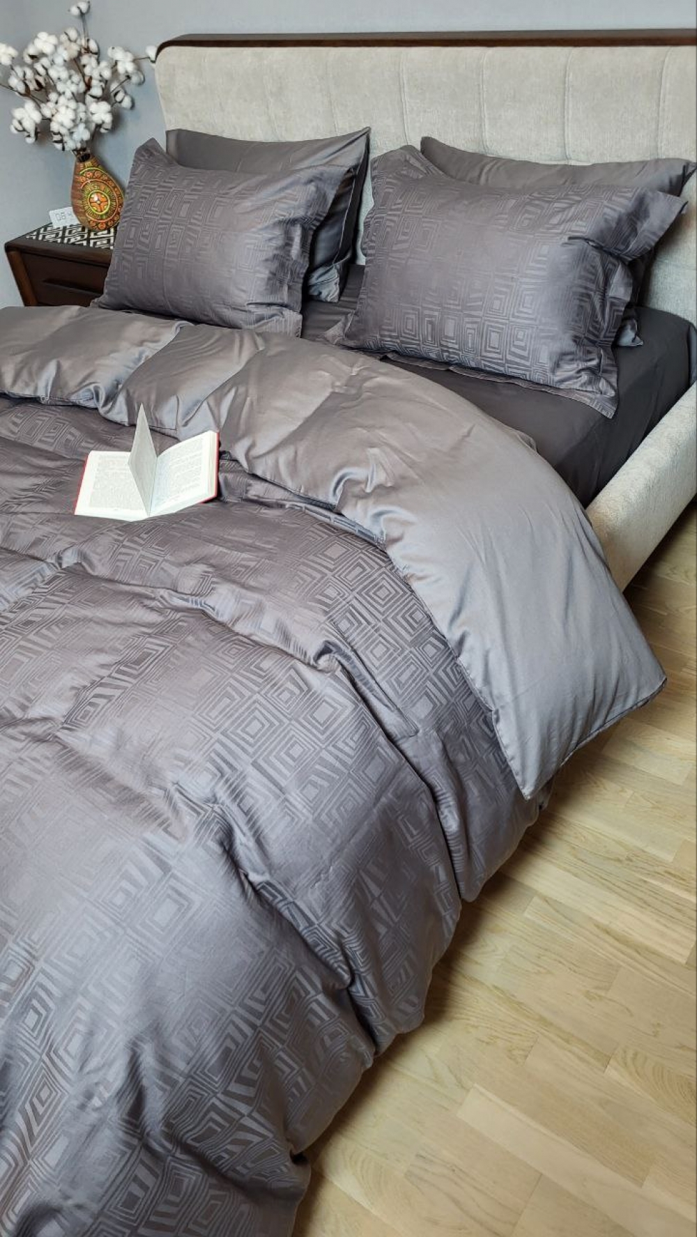 Комплект постільної білизни «Сатин JACQUARD» створює у спальні атмосферу затишку та допомагає розслабитися після насиченого дня.