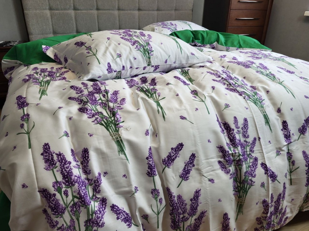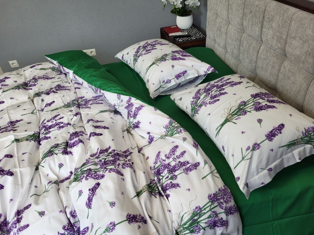 Постільна білизна Сатин PREMIUM, LAVENDER GREEN підк. Цільн. (Євро на рез.)