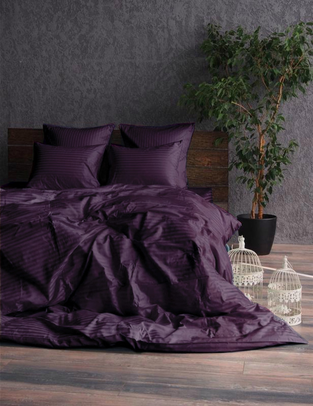 Комплект постільної білизни «Stripe LUX DEEP PLUM 1/1см» створює у спальні атмосферу затишку та допомагає розслабитися після насиченого дня.