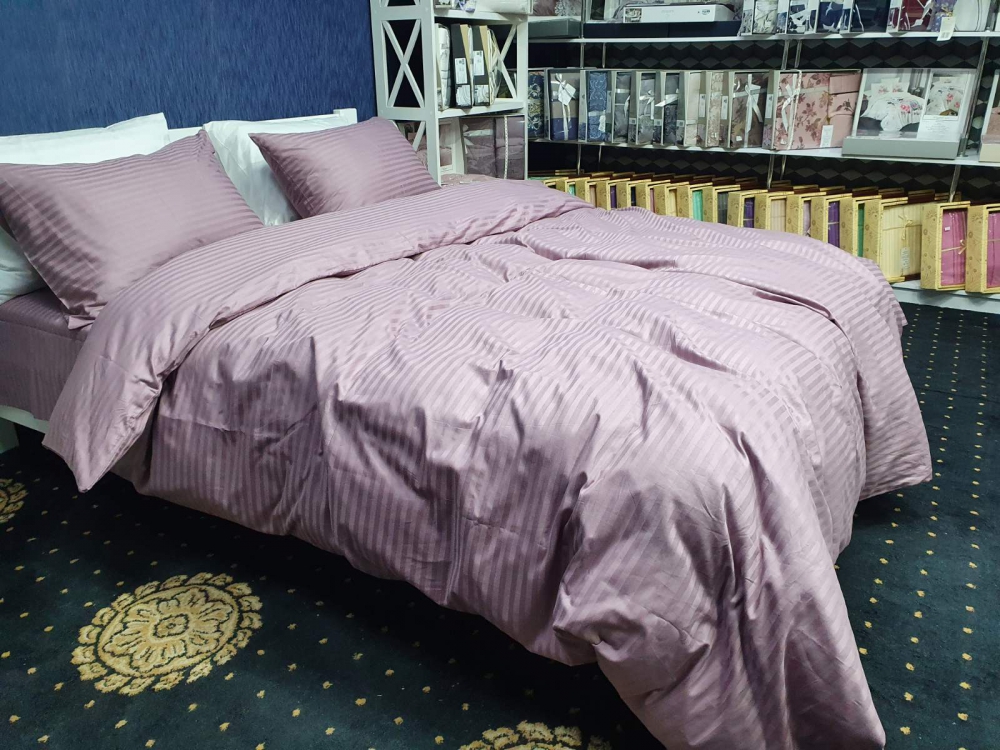 Комплект постільної білизни «Stripe LUX LIGHT PLUM 1/1см» створює у спальні атмосферу затишку та допомагає розслабитися після насиченого дня.