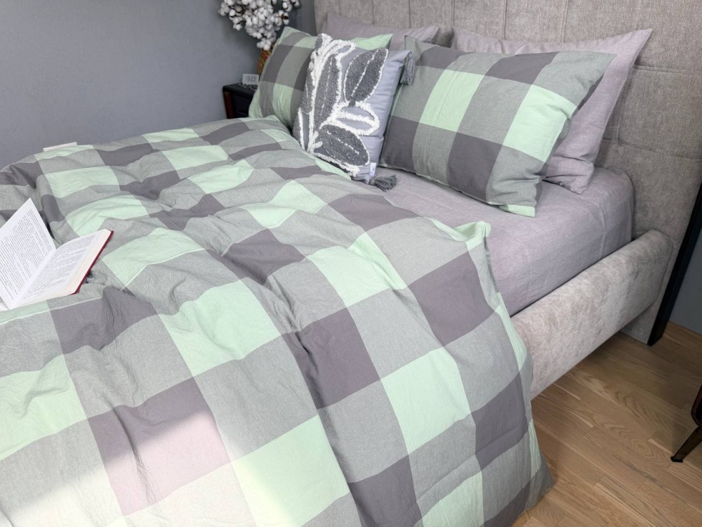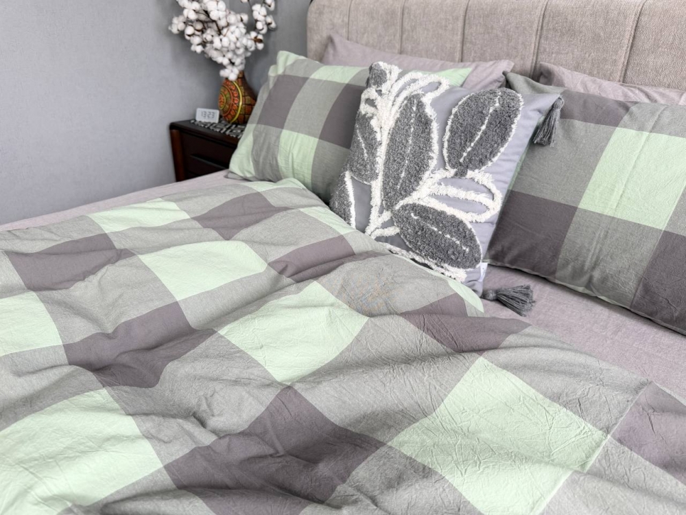 Комплект постільної білизни «Green Kilt+Rock Gray» створює у спальні атмосферу затишку та допомагає розслабитися після насиченого дня.